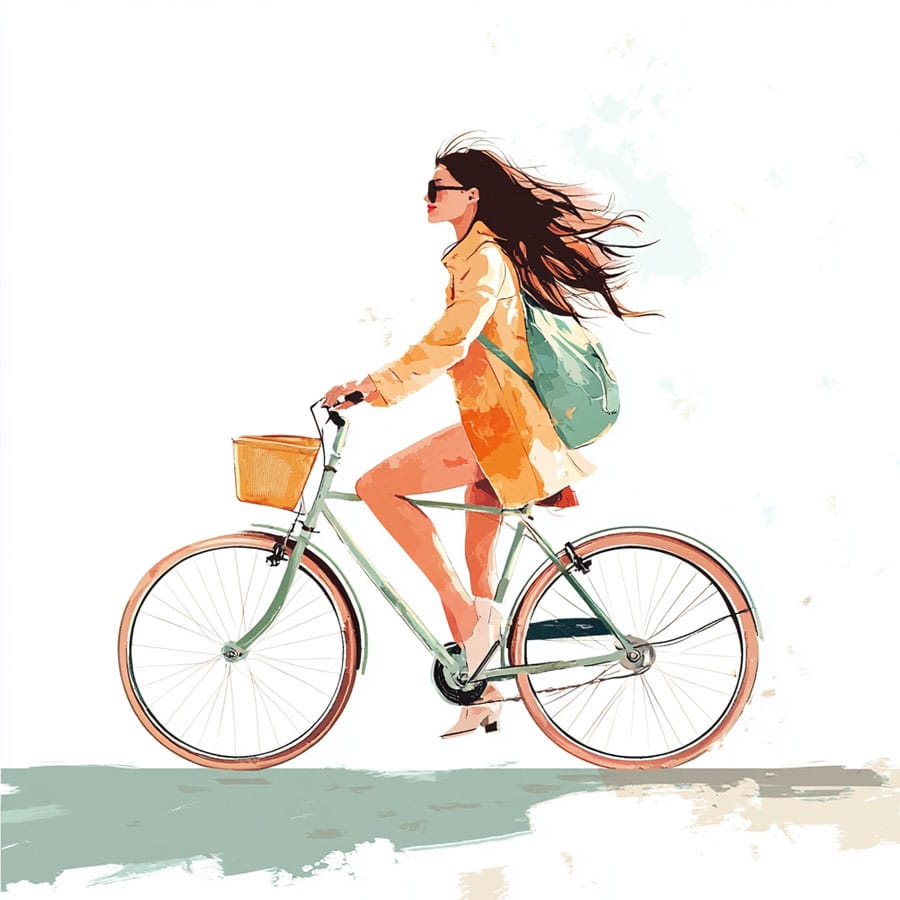 For the bike, you can experiment with metallic reflections on the frame. To create this effect, use a base color (grey, silver, or your preferred color) and add small white or lighter lines in areas where the sun might reflect, such as the handlebars or the wheels. Remember to shade the tyres and pedals to add depth.