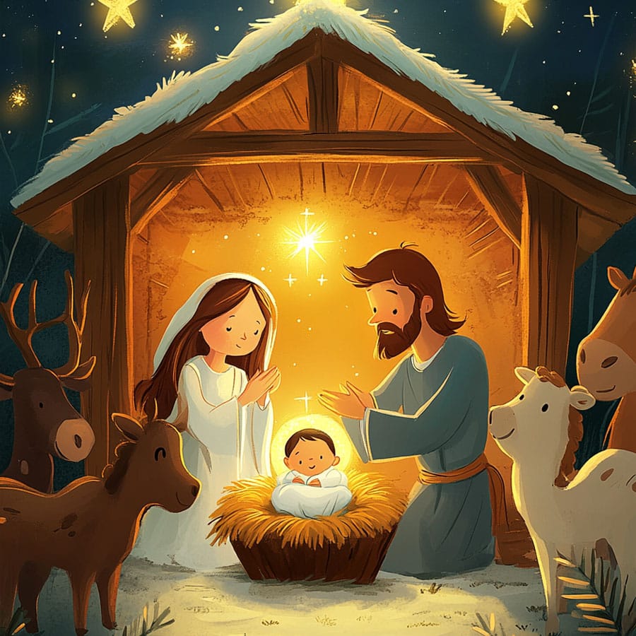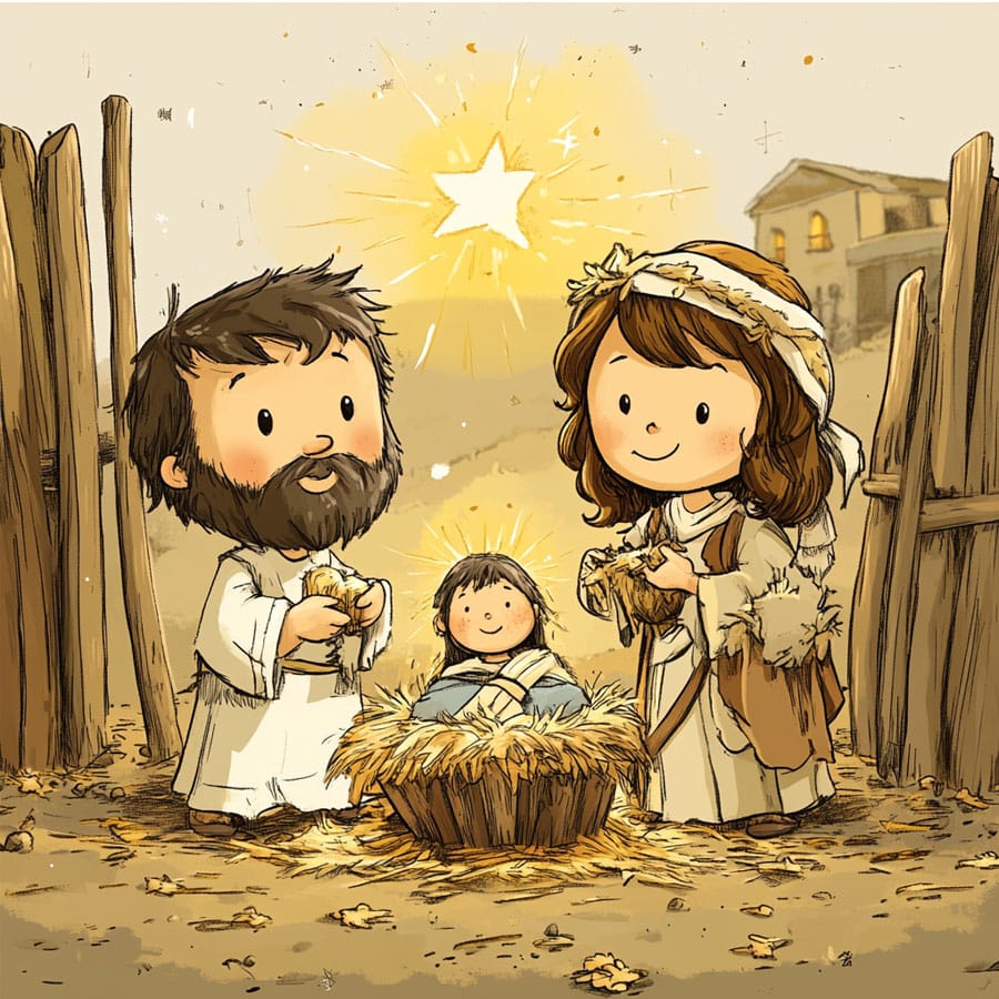 Dibujo para colorear de Birth of Jesus. Tipo: Imagen educativa para imprimir gratis. Público objetivo: 3-6 años. Formato: A4 21x29,7 cm. Dificultad: easy. Licencia: Uso personal y educativo gratuito (CC BY-NC-ND 4.0). Categorías: Christmas, Dates and holidays, Historical events. Idioma: English. Creado por: ColoringColorea. Generado con asistencia de IA por ColoringColorea
