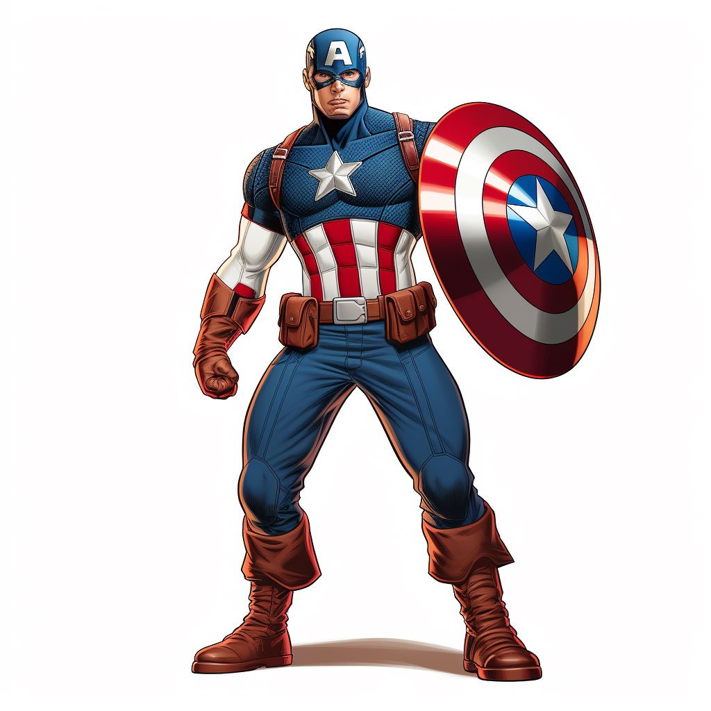 Captain America is kind of like the leader of the Avengers. He’s strong, brave, and always ready to do the right thing. His real name is Steve Rogers, but when he puts on his red, white, and blue suit, he becomes Captain America!