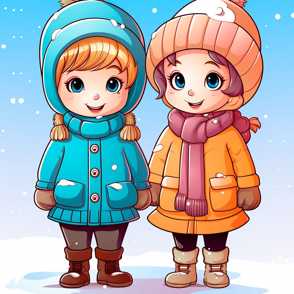 Dibujo para colorear de Children in winter. Tipo: Imagen educativa para imprimir gratis. Público objetivo: 3-6 años. Formato: A4 21x29,7 cm. Dificultad: easy. Licencia: Uso personal y educativo gratuito (CC BY-NC-ND 4.0). Categorías: Dates and holidays, Environment and Nature. Idioma: English. Creado por: ColoringColorea. Generado con asistencia de IA por ColoringColorea