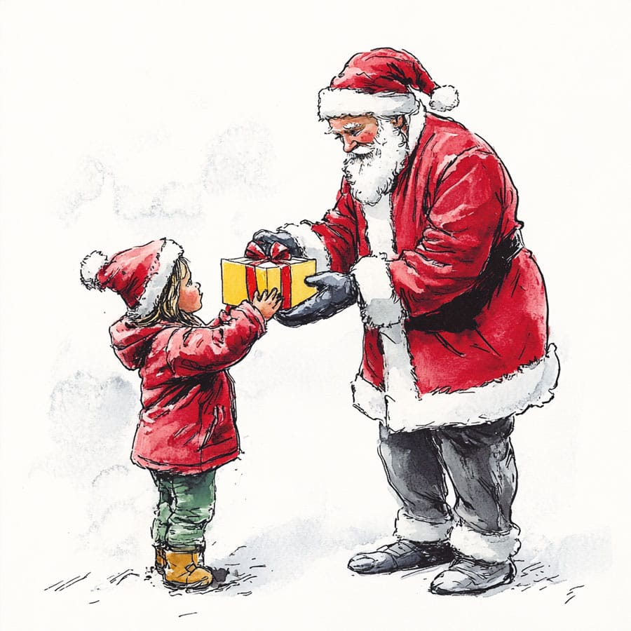 The tradition of giving gifts at Christmas symbolizes generosity and love, rooted in the figure of Saint Nicholas, known for his kindness and charitable acts. Santa Claus, as he is known today, continues to convey the message of giving without expecting anything in return. Each country celebrates this tradition differently: in some places, Santa delivers gifts on the night of December 24, while in others, the Three Wise Men or local figures bring the presents. Coloring this scene allows children to have fun and reflect on the value of giving and how this tradition brings people together around the world.