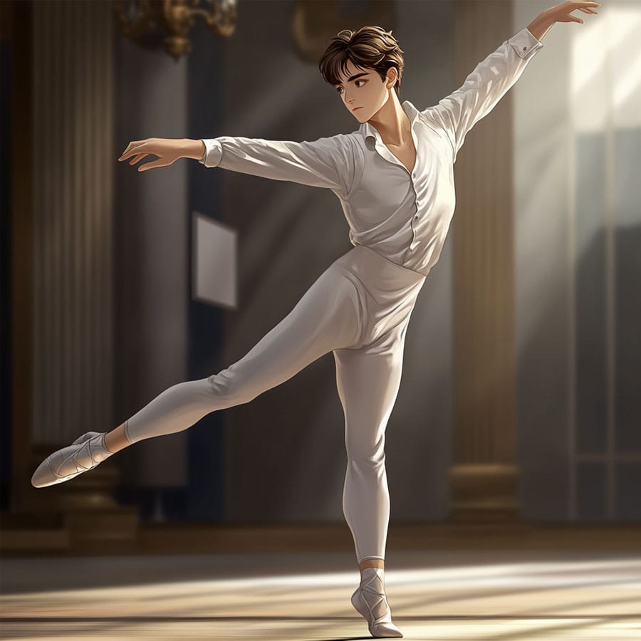 Start with soft tones for the dancer’s outfit, such as white, gray, or pastels, which are often associated with ballet attire, but don’t hesitate to experiment with bolder colors if you prefer. His ballet shoes can be white or black, or you can choose vibrant colors to highlight his individuality.