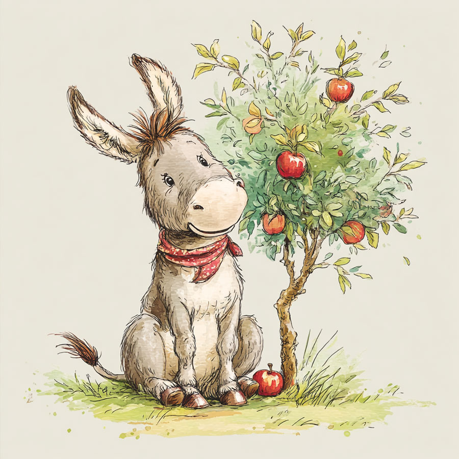 Base Coloring: Start by coloring the big areas with a main color. For the donkey’s body, maybe a light brown, and for the tree trunk, a darker brown, with green for the leaves. Try to stay inside the lines, but don’t worry too much if you go over a little!