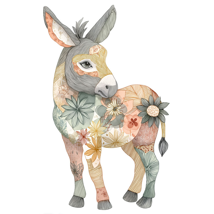 Details: Now’s the time for the smaller details. Draw flowers and color their petals with pretty colors. Carefully color the donkey’s fur, using small, even strokes like you’re drawing individual hairs. Little details make your drawing way more interesting!