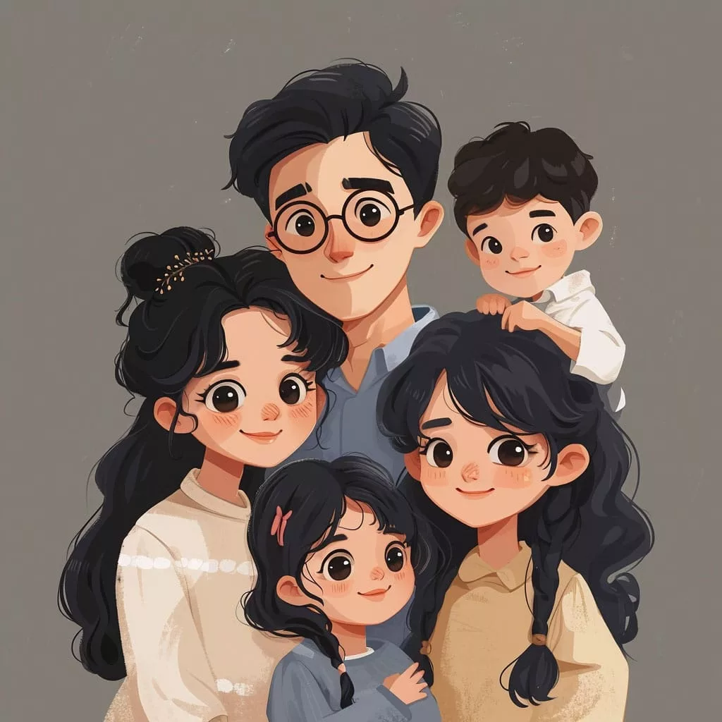 A family is a group of people who care for, love, and support each other. In our drawing, there’s a family with a mom, dad, and three kids, but remember, families can come in many shapes and sizes. Some have just one mom or one dad, others have two moms or two dads, and some are made up of grandparents, aunts, uncles, or very close friends.