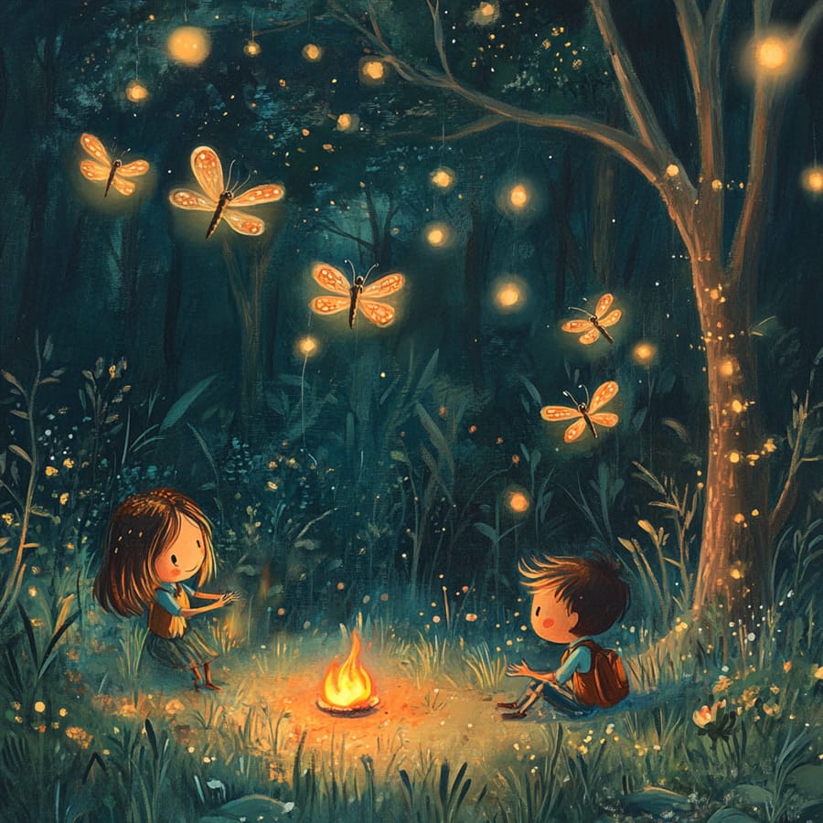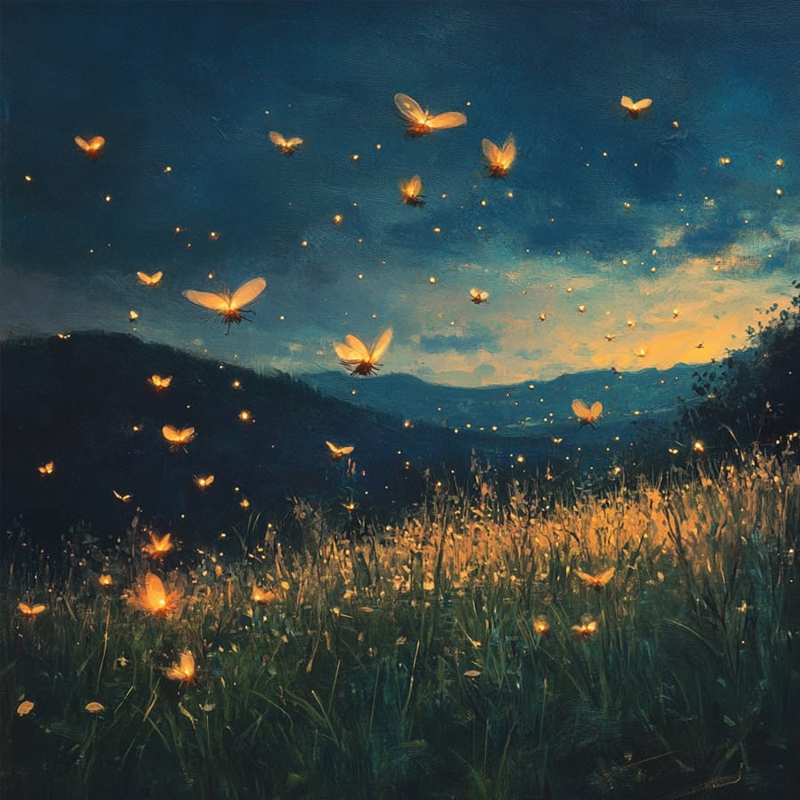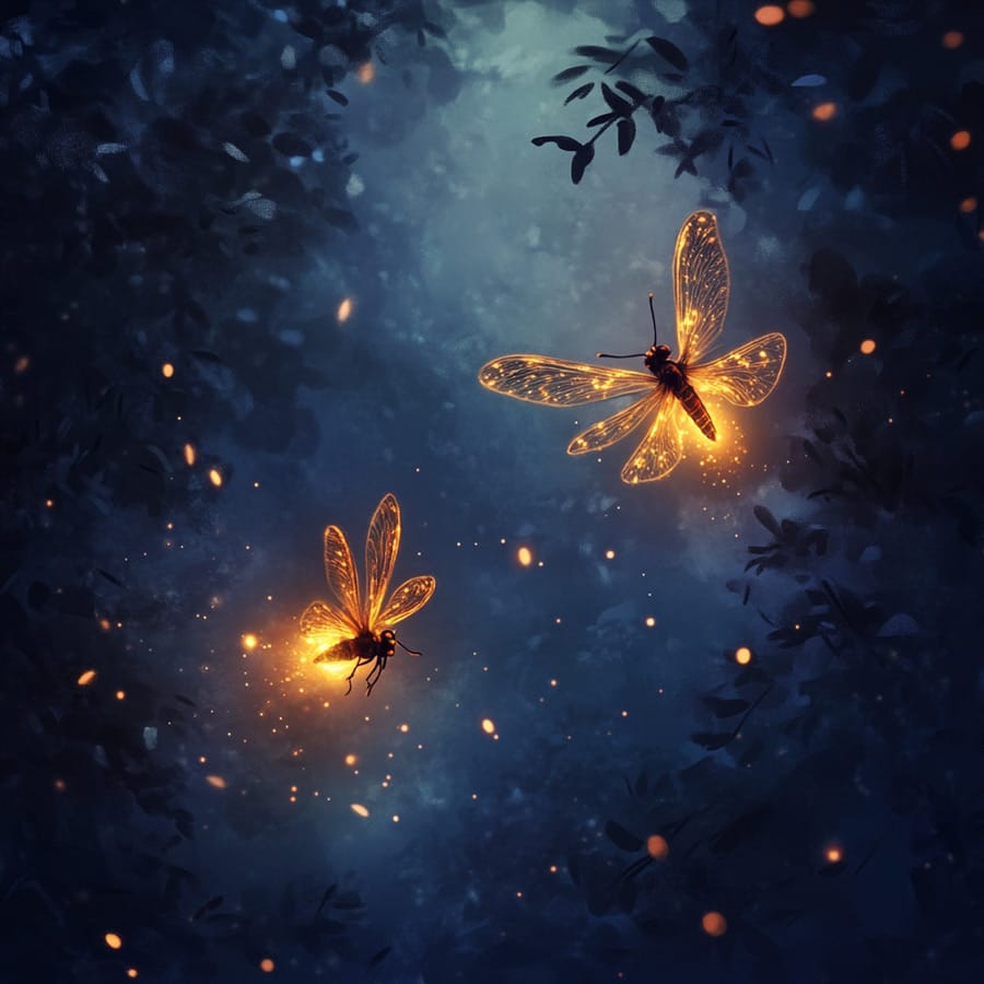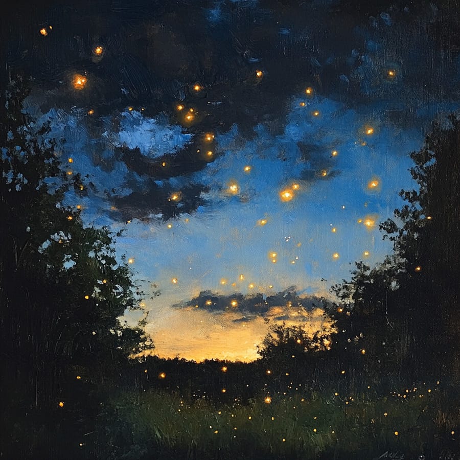 • Draw small lines with a white pencil or glitter gel pen around the fireflies to create a radiant light effect.