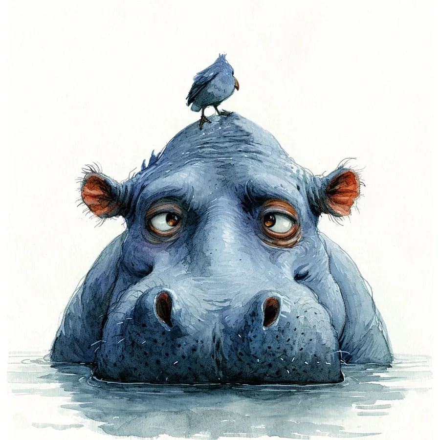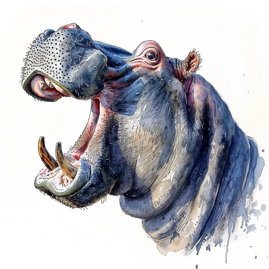 In this colouring-in picture, we see a hippo in its natural habitat, enjoying the water of a quiet river or lake. Hippos are fascinating and essential animals in their ecosystems. Did you know that these African giants spend most of their day in the water to keep cool? Colour in this drawing and help us create a beautiful habitat for our hippo friend – use your favourite colours and let your imagination run wild!