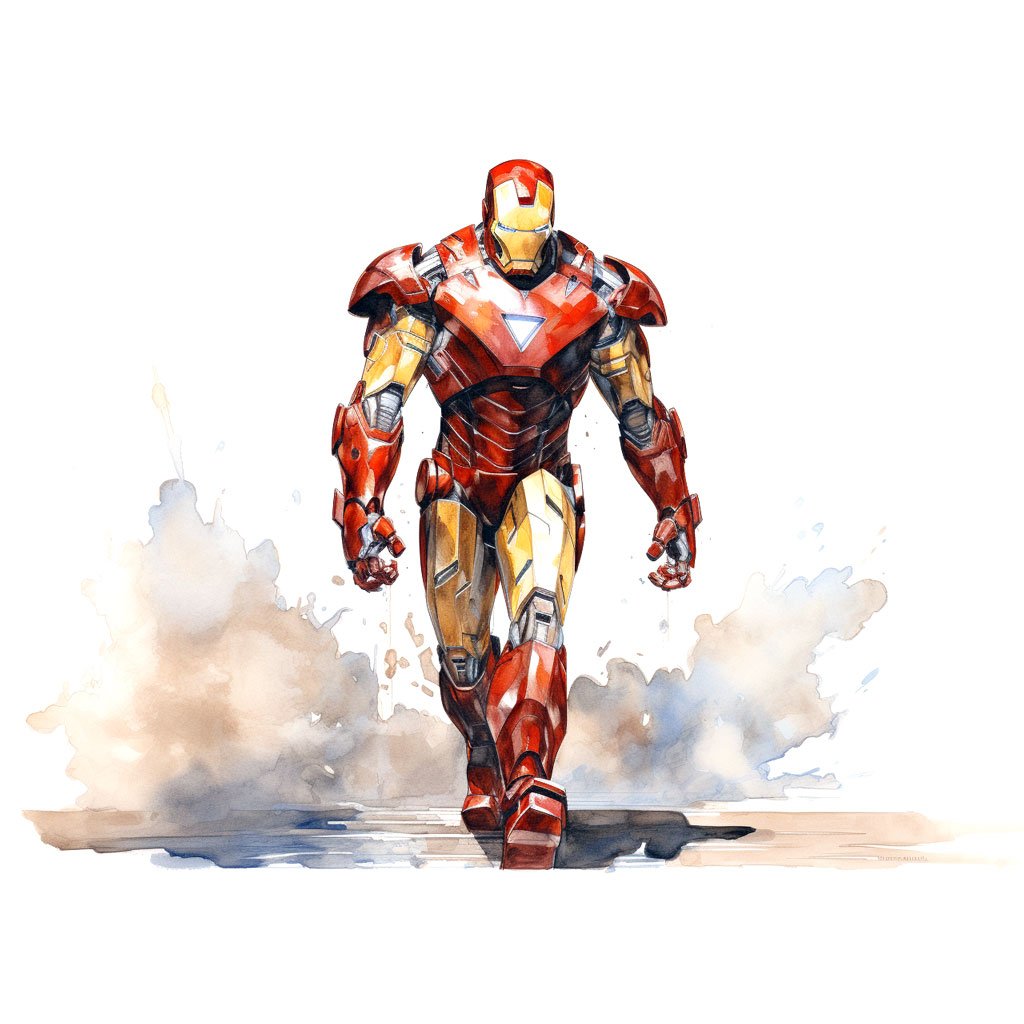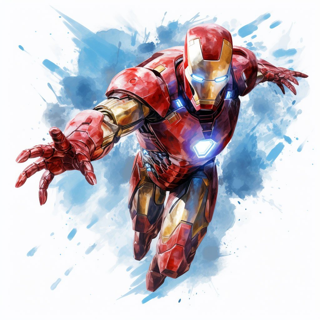 Moreover, the word “IRON MAN” behind the character is the perfect detail to play with colors. A dark background will make the armor stand out even more, while a warm gradient can convey that sense of energy in the middle of battle.
