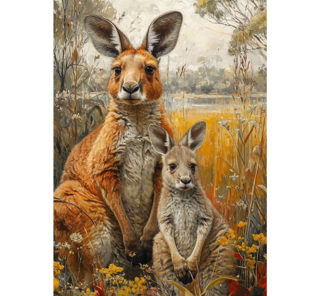 Is your kangaroo leaping across the plains at dawn, or is it resting with its mob under the shade of a eucalyptus tree? Maybe it’s a mother kangaroo with a peeking joey in her pouch. Each color you add brings a part of their story to life.