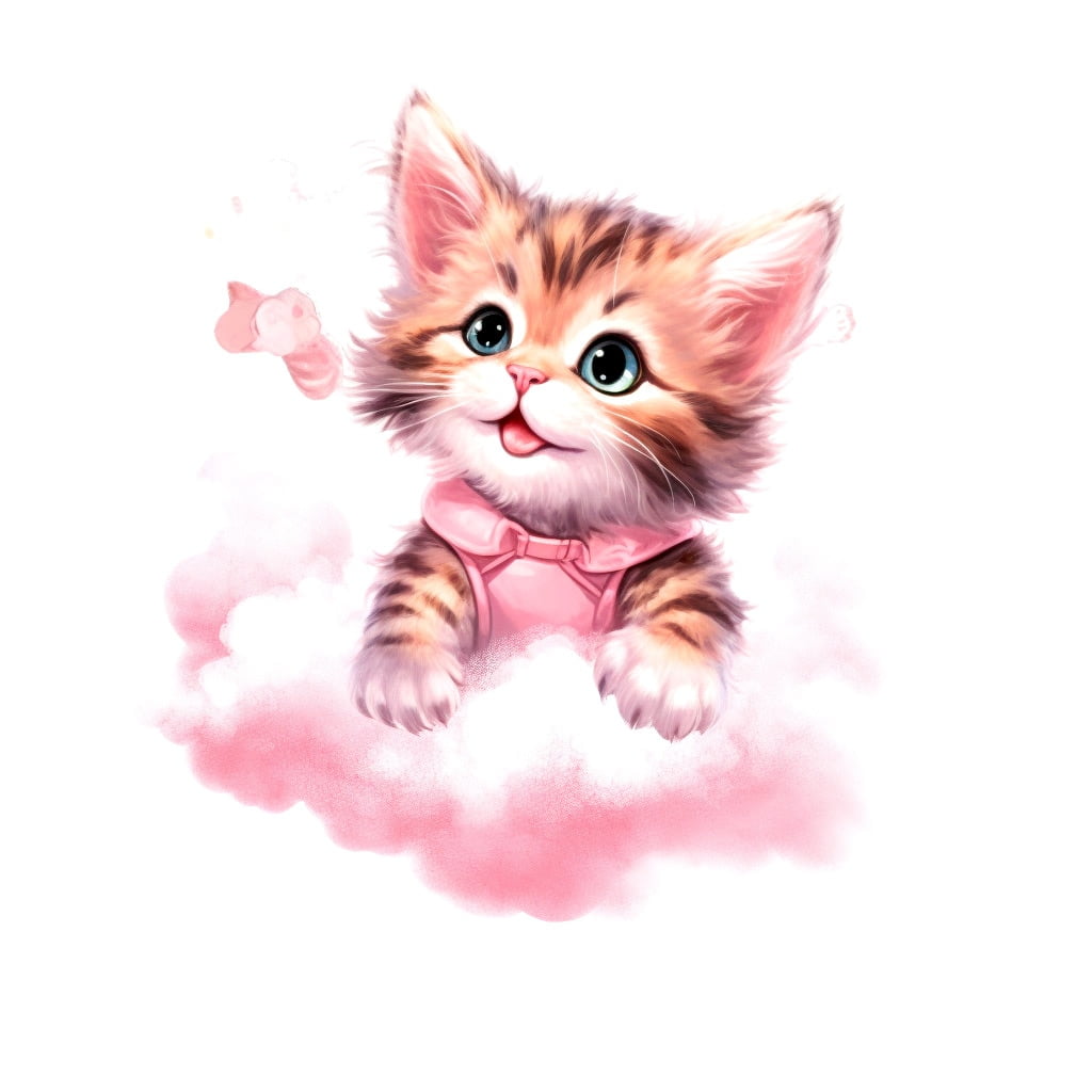 Imagine a little kitten that seems to have stepped out of a Japanese fairy tale. With her fluffy tutu dress and a giant bow adorning her tiny head, our feline ballerina radiates an unparalleled tenderness. Her large, bright eyes invite us into a fantasy world where anything is possible. Every detail, from her pink whiskers to the tips of her paws, is designed to captivate and enchant.