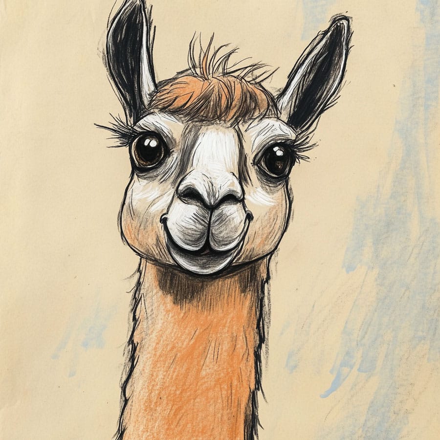 Imagine you’re walking through the high Andean mountains, where the air is clean and the sky seems closer. Suddenly, you come across a llama with enormous, curious eyes wearing a crown of flowers. This isn’t just any llama: it seems to have something special, as if it’s waiting for someone to give it color, to bring it back to life with pencils, crayons, or markers.
