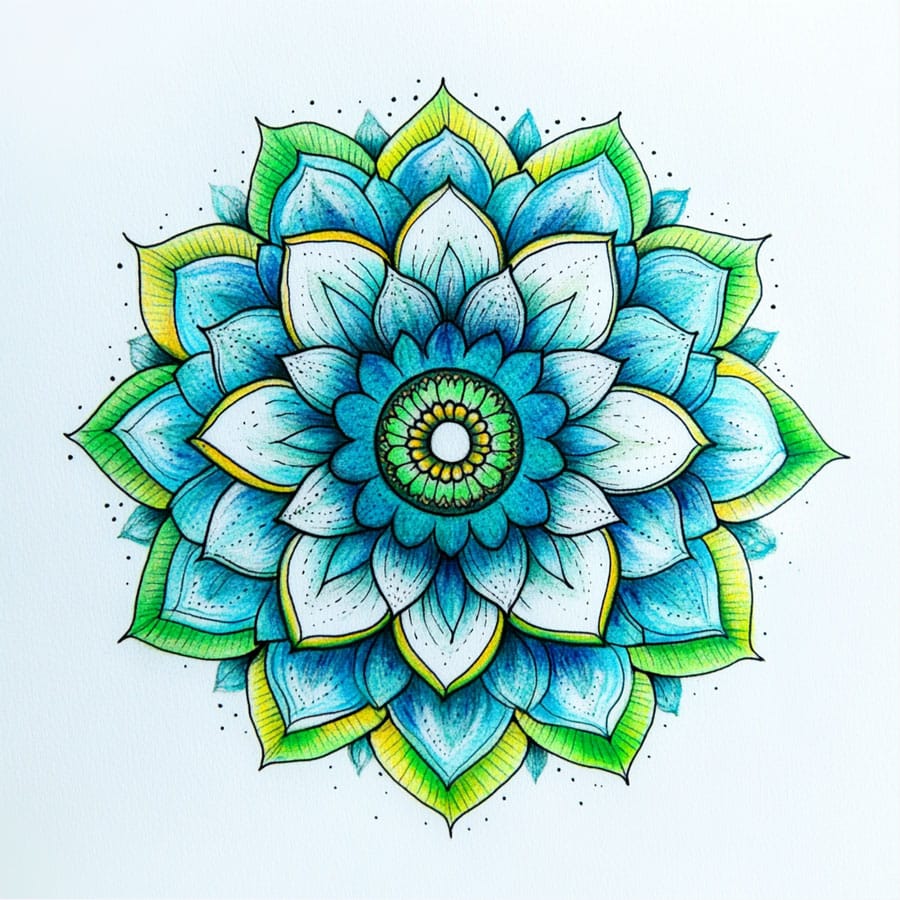 Try Adding a Background: If you feel adventurous, add a soft watercolor or pastel pencil background around the mandala to make the details inside stand out even more.