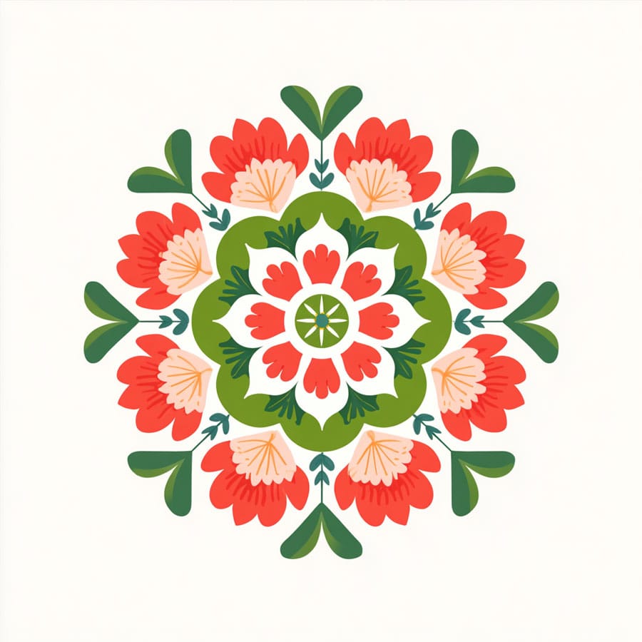 Begin with the floral centerpiece. Warm tones such as reds, oranges, and pinks will bring it to life, infusing the design with energy and vibrancy.