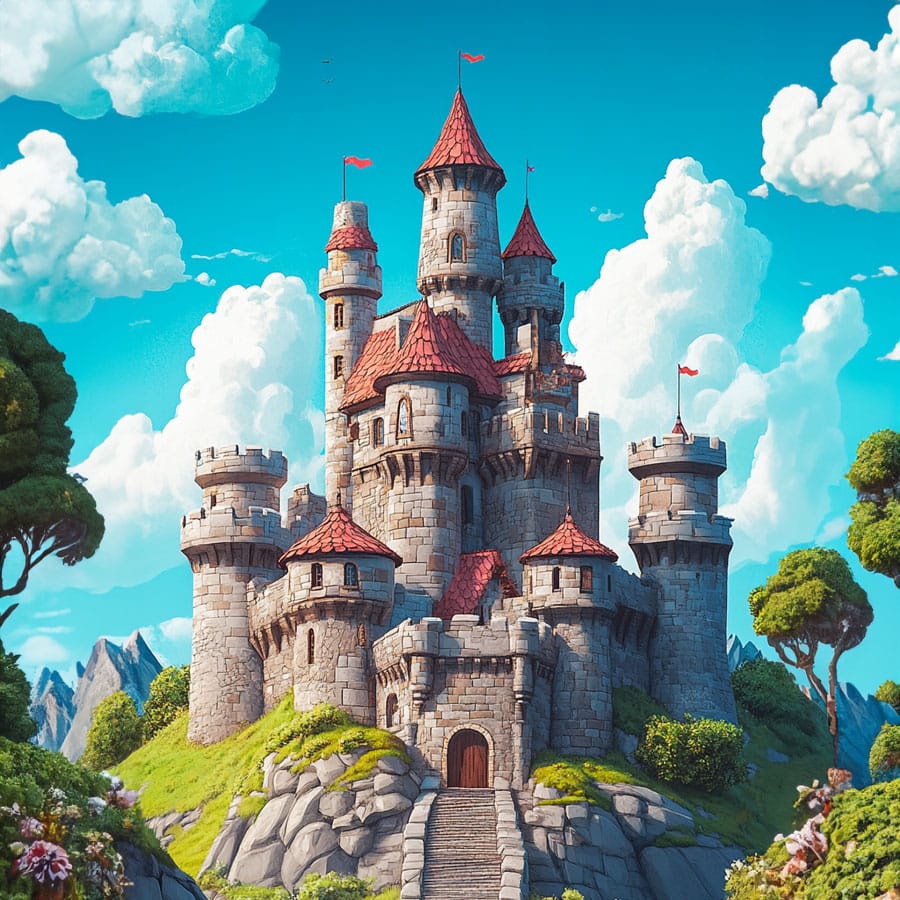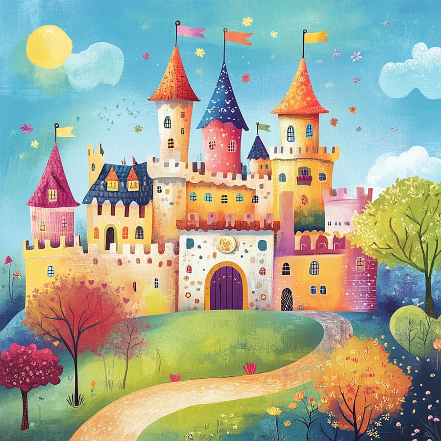 The castle in the background can be colored in shades of gray or beige stone, but don’t hesitate to add some brighter details for the roofs or flags. The hills and landscape around can take on greens and browns, creating a natural contrast that brings the medieval setting to life.