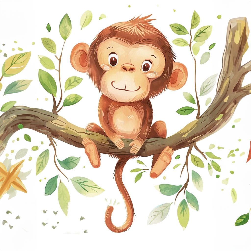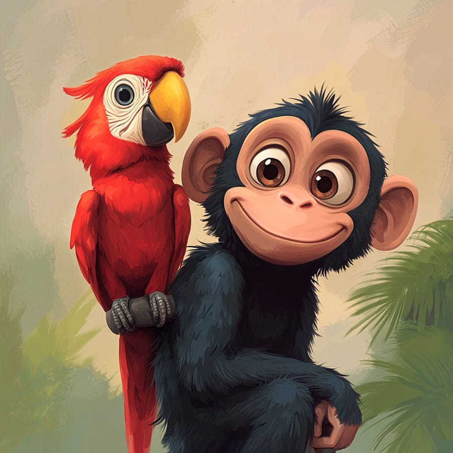 Shadows and light: Apply shadows in areas where the monkey’s arms overlap its body or where the parrot is perched on its shoulder. This will give more realism to the illustration. Using darker browns or greys for the monkey’s shadows will add depth.