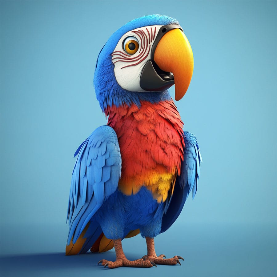 Feather details: For the parrot, create layers in the feathers by using multiple shades of the same color (for example, various shades of green or blue), starting with a lighter base and adding darker details.