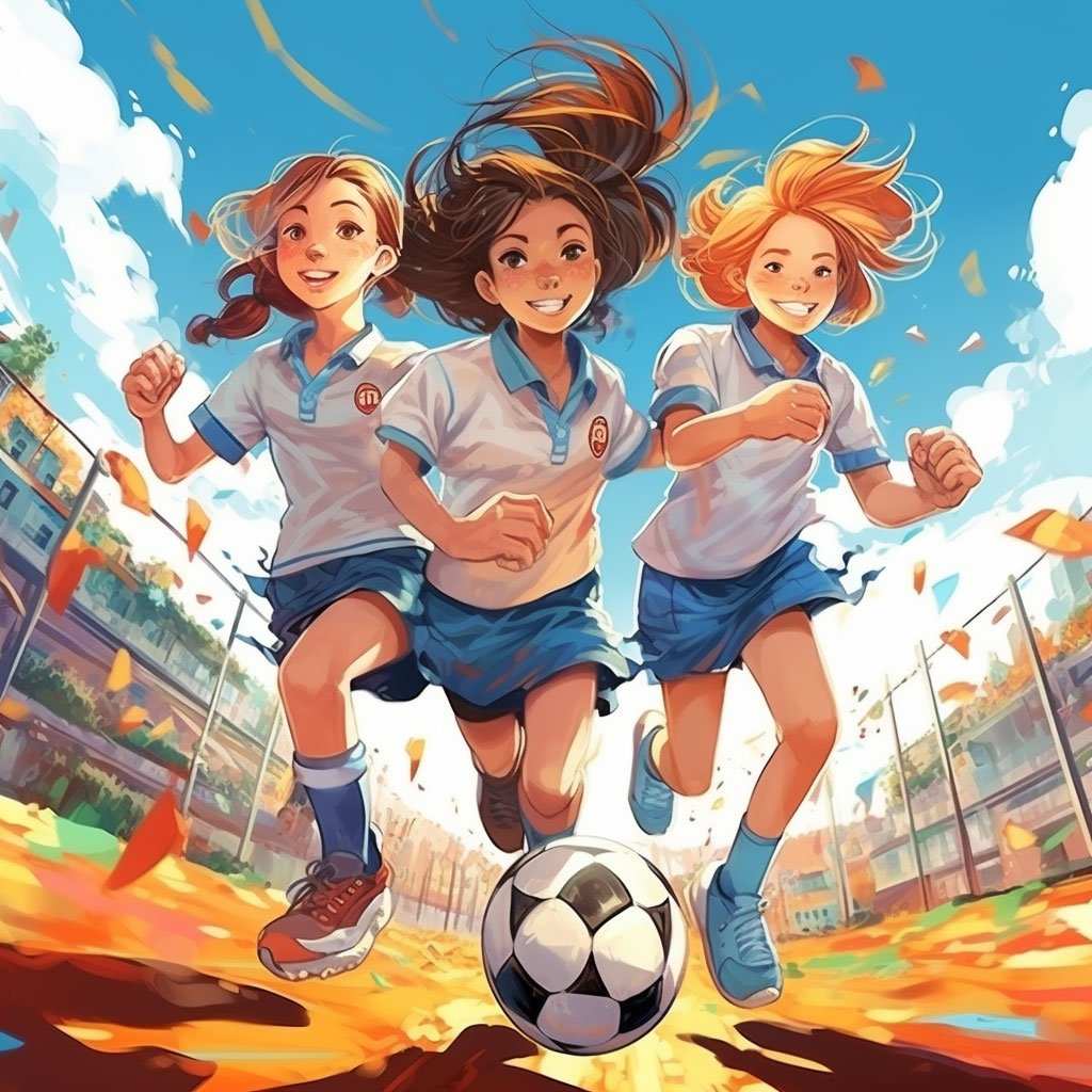 • Background: For the field, use green in different tones for the grass. Add details like white lines to simulate the playing area. The sky can be light blue with gradients to convey the energy of a sunny day.