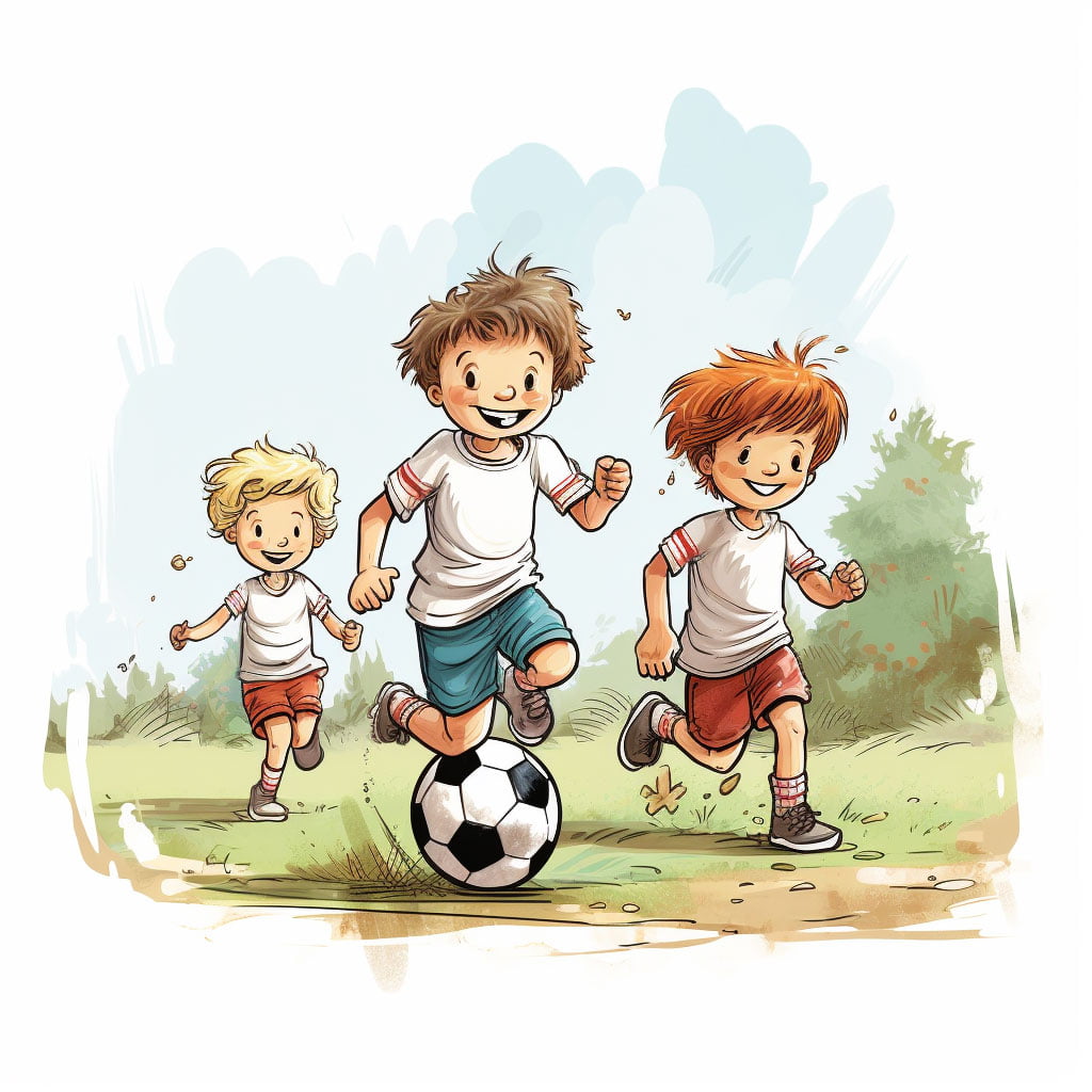 Join us for an exciting game of football! In this image, three energetic players invite you to join their team. By colouring in this scene, you can experience the game’s intensity, feel the sweat on your forehead and the joy of victory. Get ready for an adventure full of colour and fun!