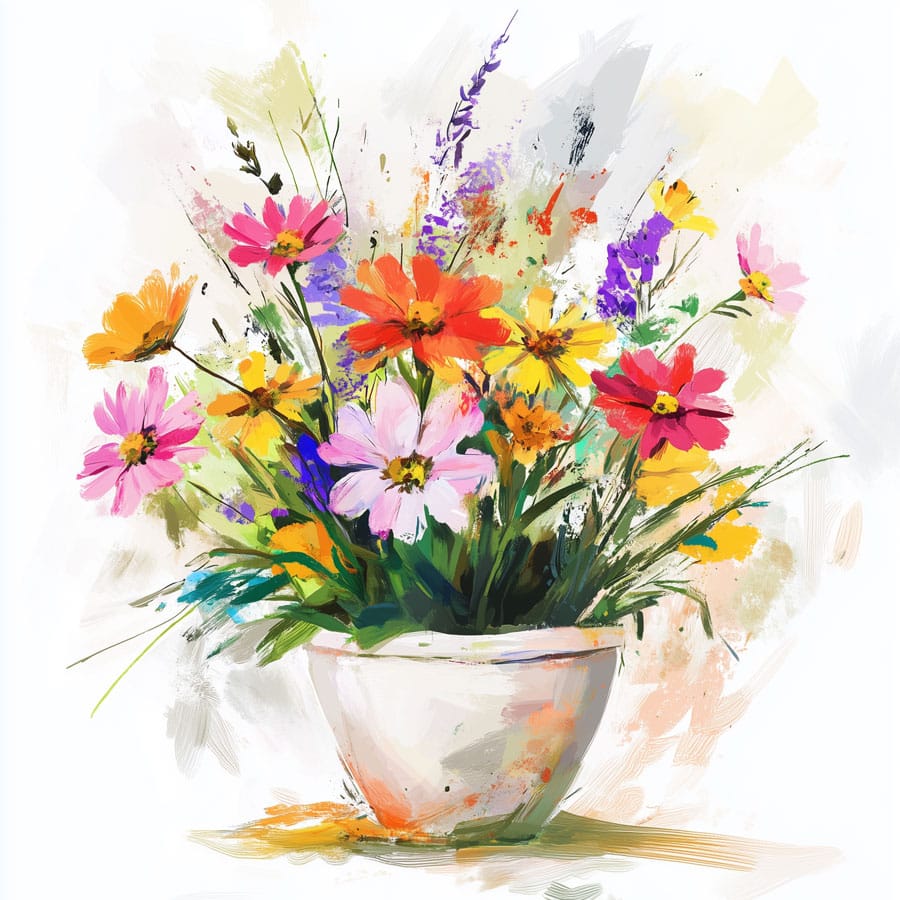 A large bouquet of flowers in a pot represents life, care, and our connection to nature. Through this drawing, we can reflect on the effort and dedication required for something to grow and bloom.