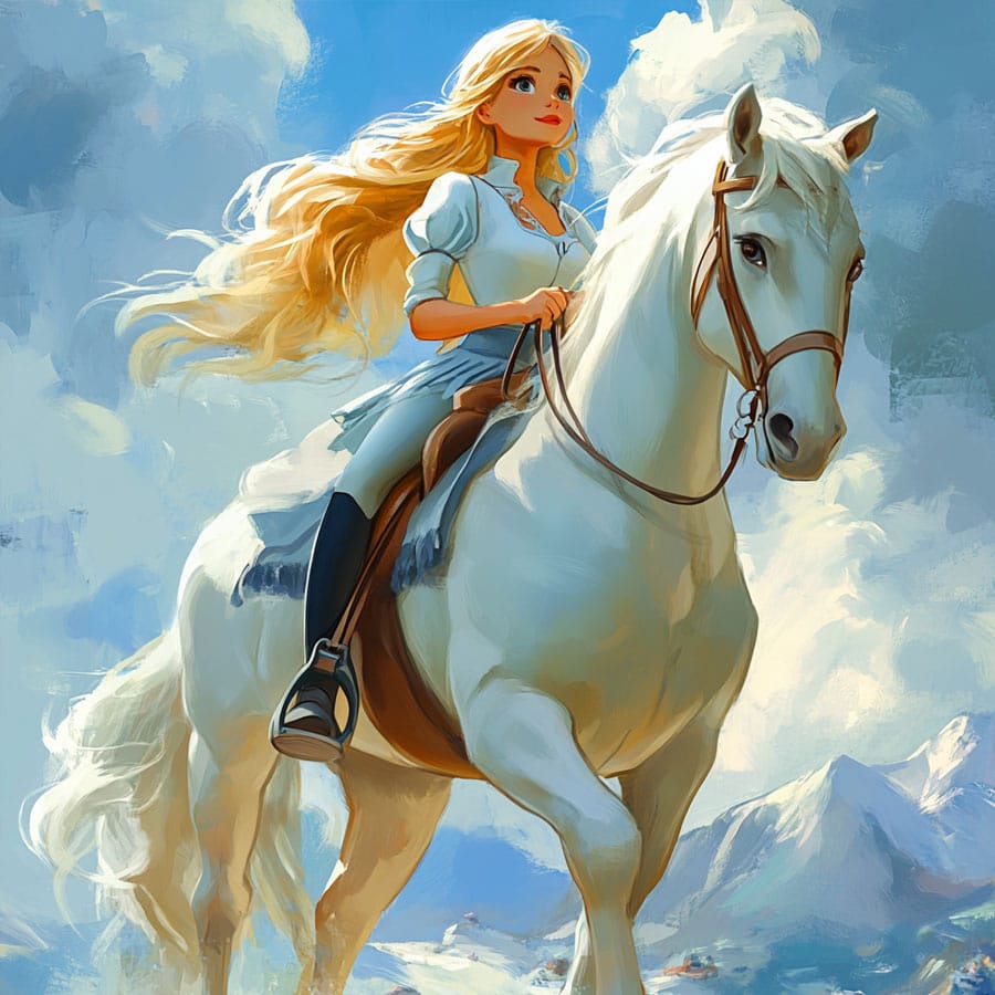 •Use a white pencil or gel pen to add highlights in areas like the horse’s mane or the jewels on the princess’s outfit.