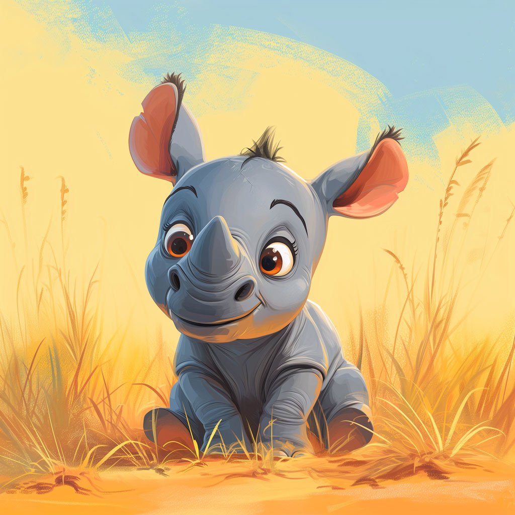 This drawing offers great potential to explore different techniques. The rhino, with its textured skin, is perfect for practicing shading. A soft pencil will allow you to create areas of light and shadow that add volume to the figure. If you’re looking for a more dramatic effect, you can use watercolors to create gradients and transparency.