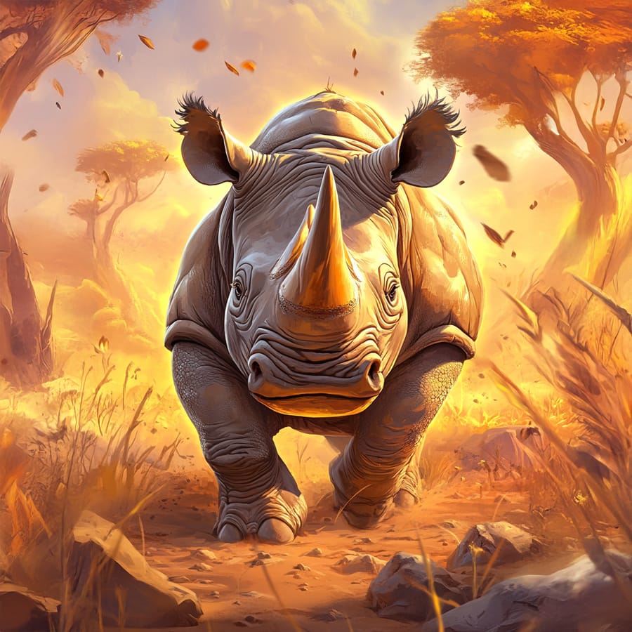 To bring your drawing to life, add small details like insects, dust in the air, or the rhino’s shadow projected onto the ground. These elements will enrich the composition and allow you to showcase your creativity.