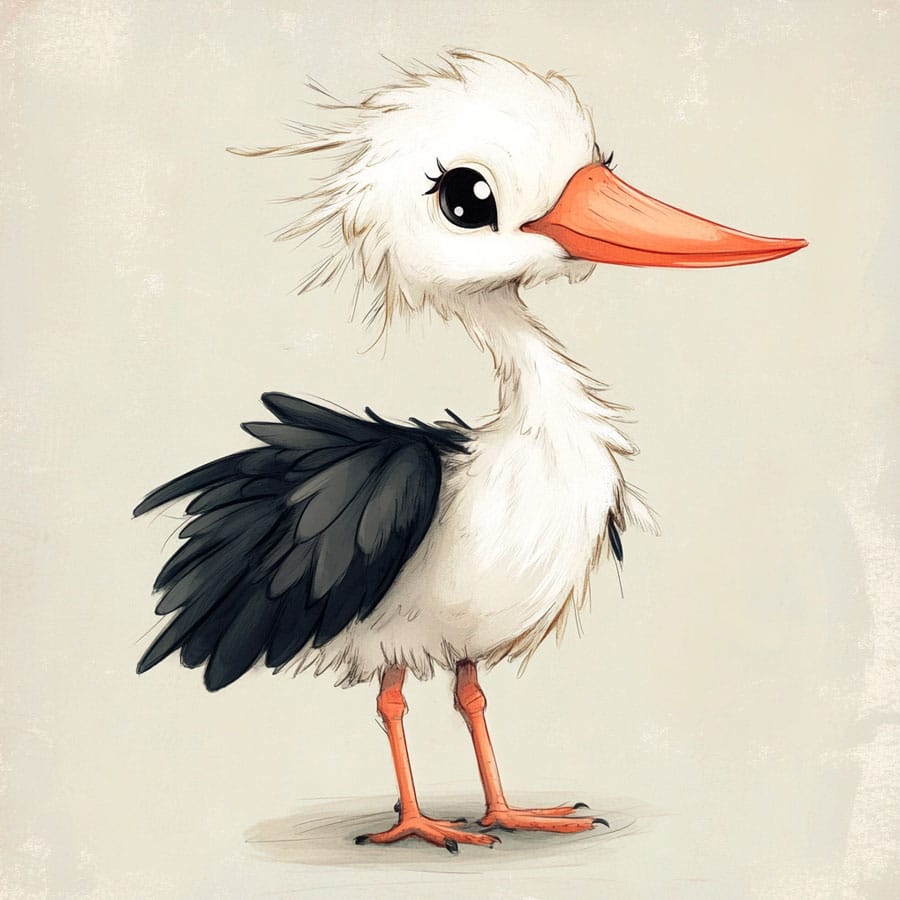 Beak: Storks’ beaks are often bright red or orange. You can use a bright orange as a base and add shading at the base of the beak and the tip to give it depth. This will help the beak stand out and add a vibrant touch to the drawing.