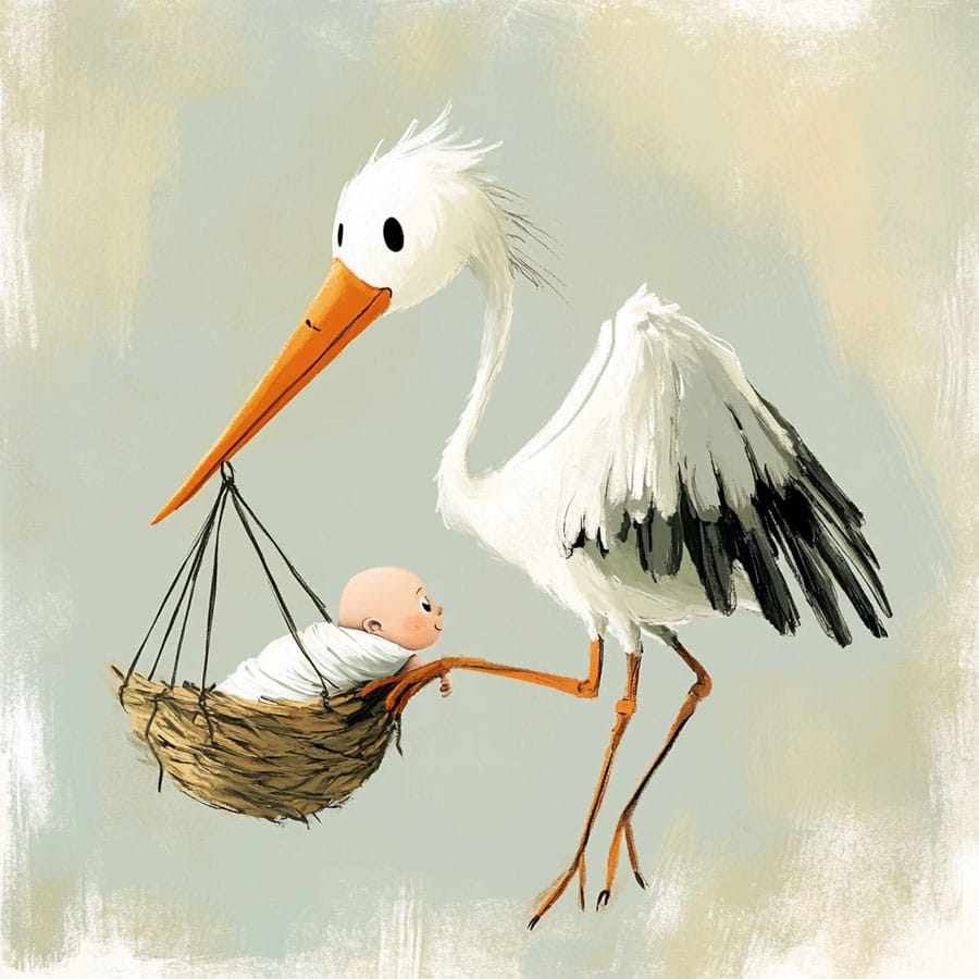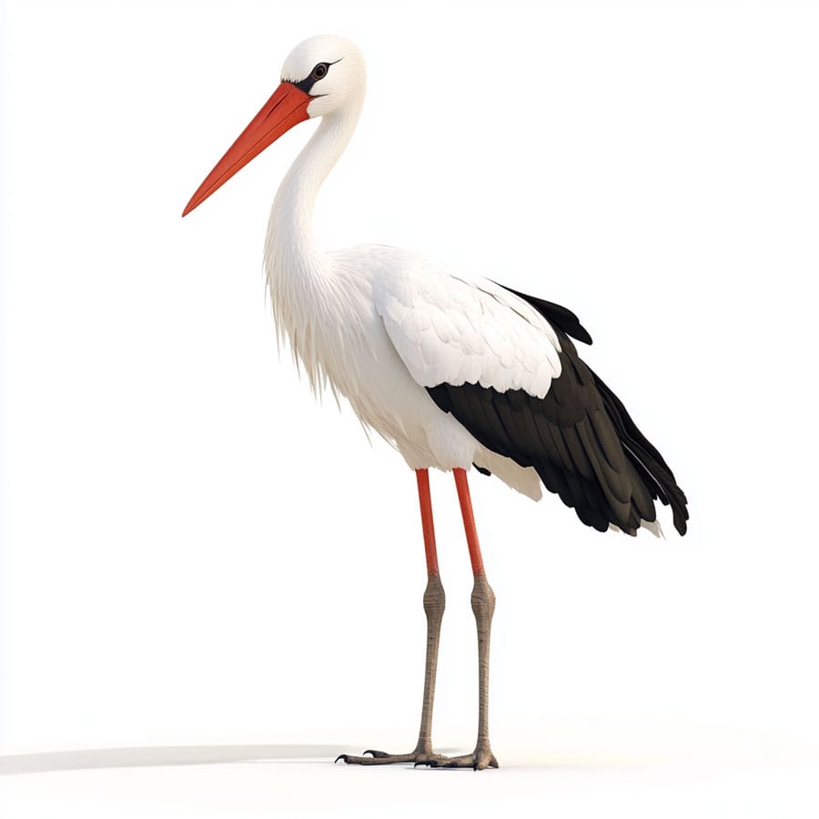 Plumage: The stork’s body is usually white, so you can use a white or very light gray tone for a soft base. However, you can add shadows with a darker gray in areas like the neck and under the wings to give it volume and a three-dimensional look. The tips of the wings can be black, creating a nice contrast with the body.