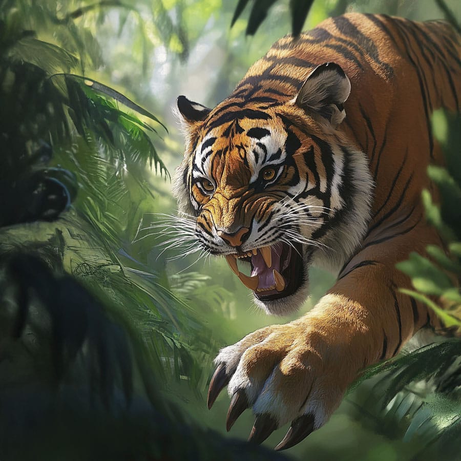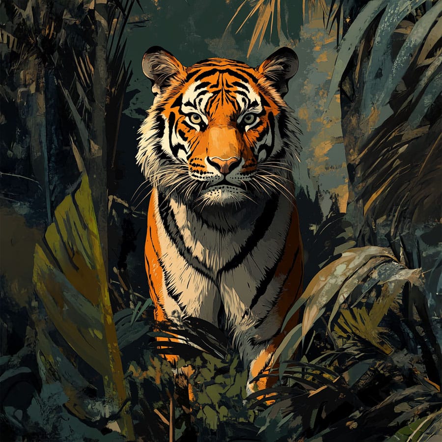 - Additional Elements: Add details that enhance the narrative, like a butterfly fluttering near the tiger or an animal footprint on the ground.