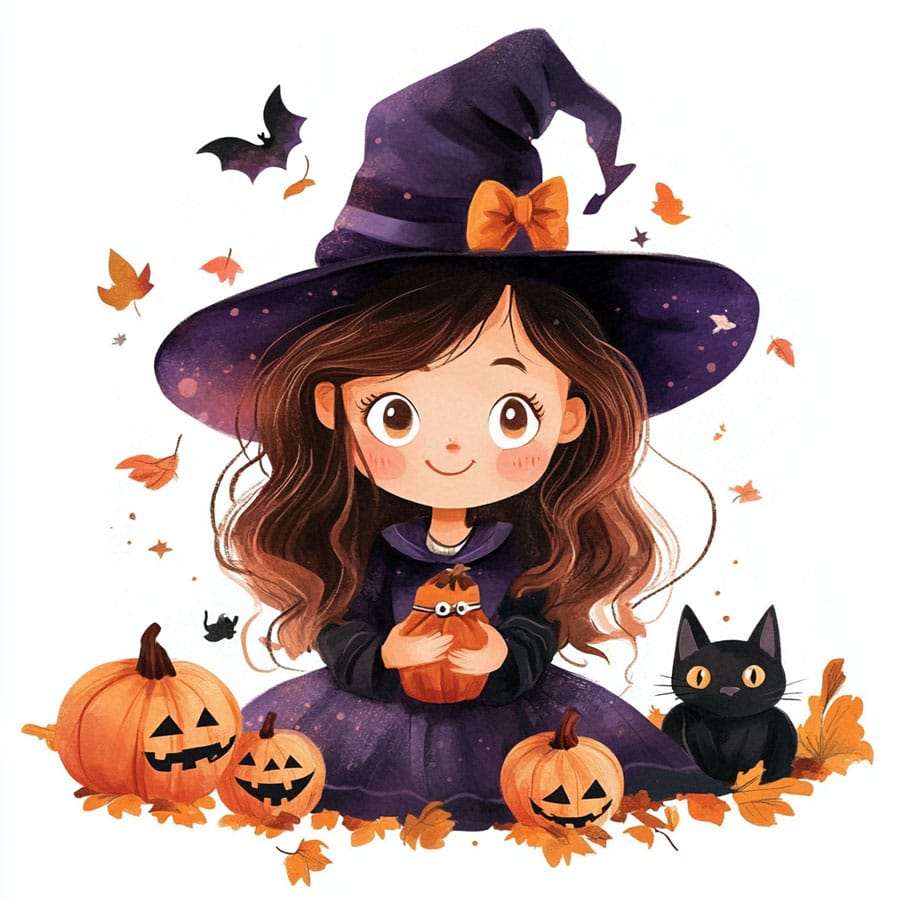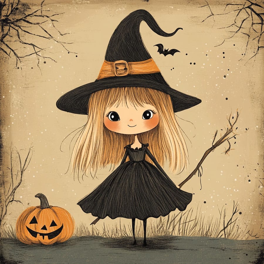 •Witch Hats: Traditionally, witch hats are black, but you can be creative. Use dark purple or green tones to make them more interesting. You can even add shiny details with metallic pencils or glitter on the edges for a magical touch.