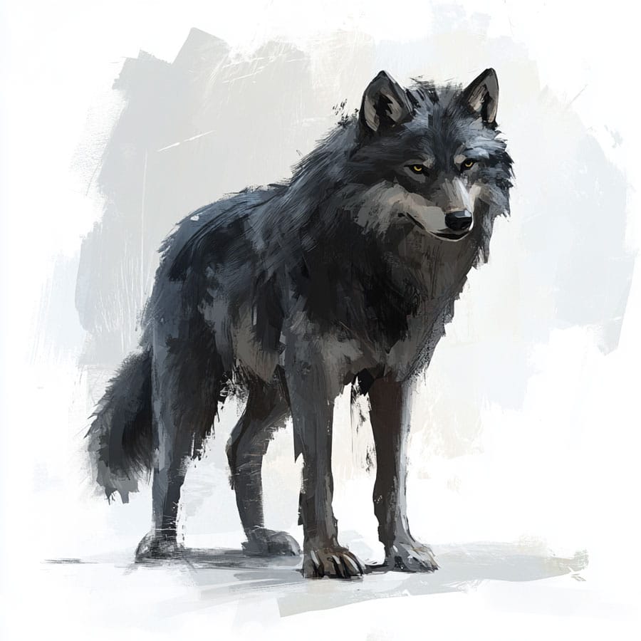 To color this drawing, start by choosing a dark gray or black tone for the wolf’s fur, adding lighter gray or white highlights to simulate the texture and create volume. Pay attention to areas where the moon’s light might reflect, emphasizing parts of the body like the neck, upper back, and legs. Use short strokes toward fur growth for a more realistic effect.