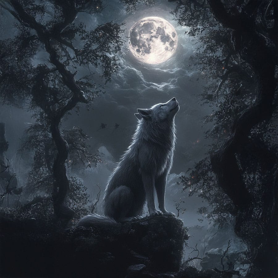 The wolf’s howl serves many purposes in real life: it is an essential method of communication for the pack, helping to strengthen bonds and coordinate hunts. Contrary to popular myth, wolves do not howl specifically at the moon; however, they often raise their heads to amplify their howls, creating the association with the night sky and the moon. The image of a wolf howling at the full moon has been perpetuated in culture due to its symbolism of solitude, mystery, and power, evoking respect and fascination.